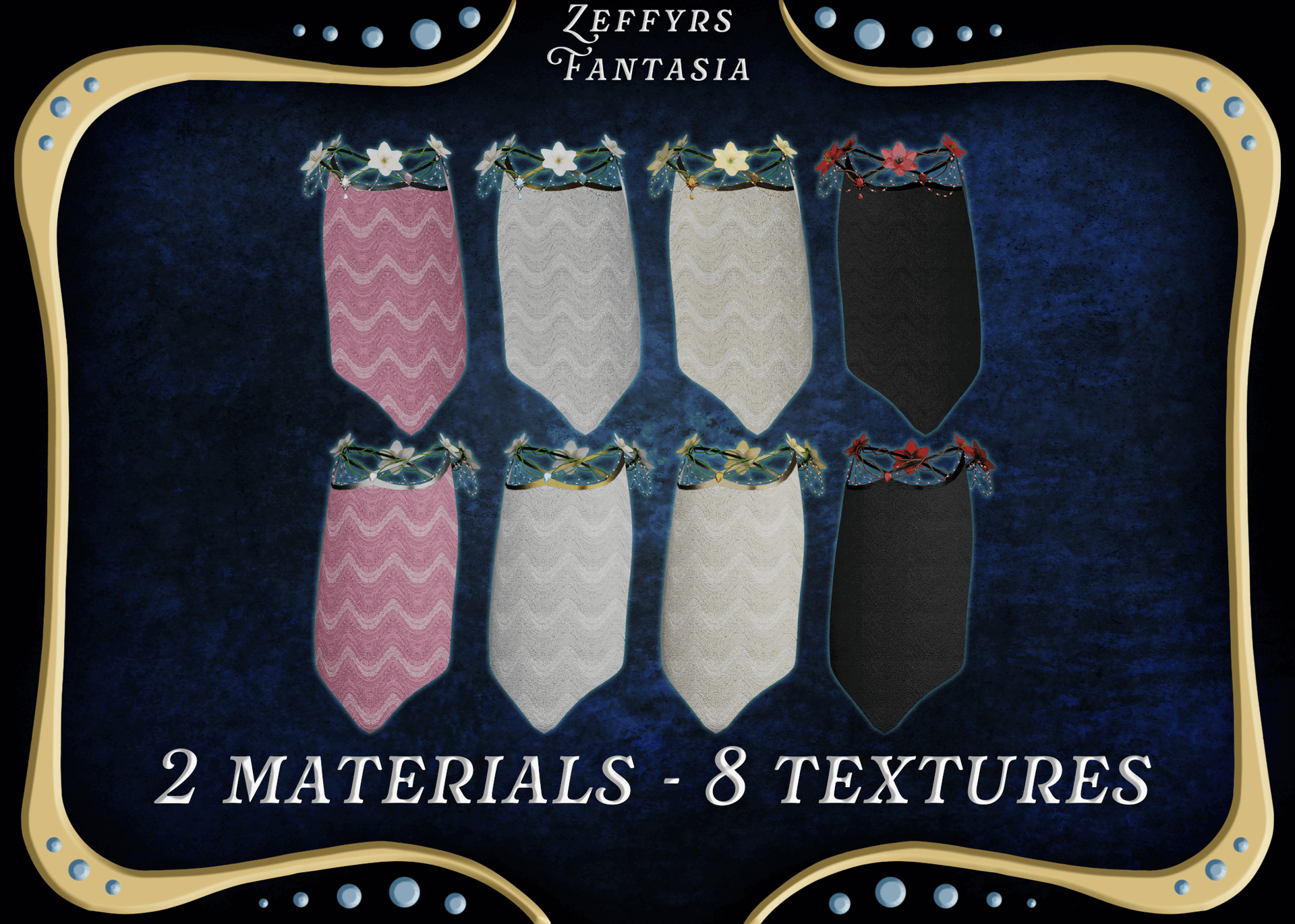 - Masking textures provided (gems, metal, beads, fabric, etc,)
