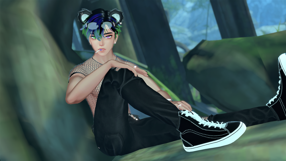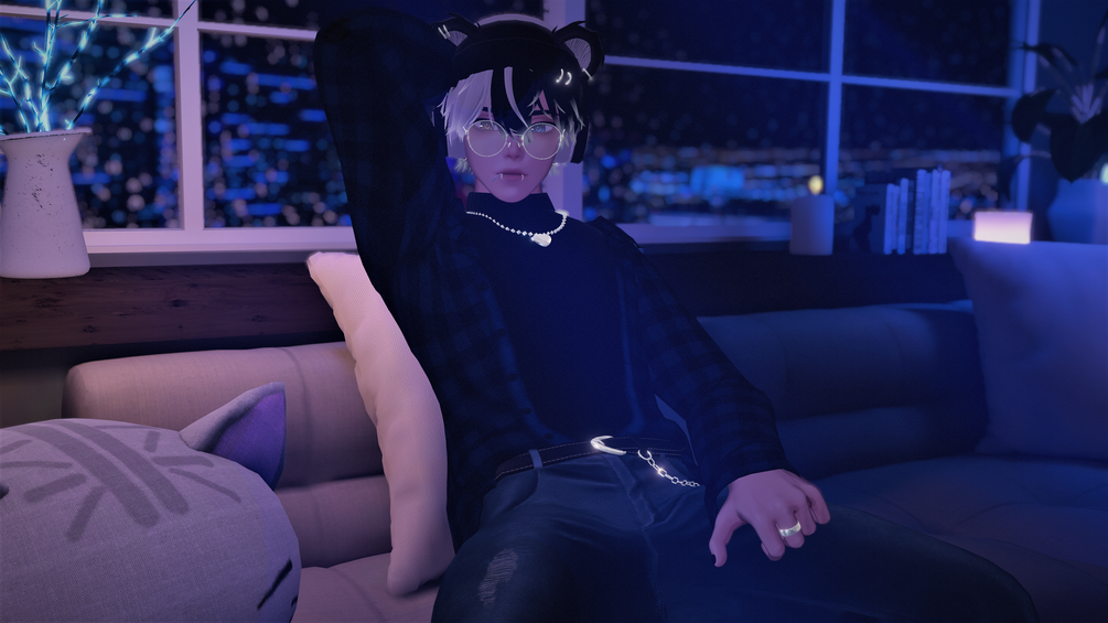 Assets made by Zeffyr: Panda tail, Panda Pet, Rings, Boxers, Flannel, Turtleneck sweater, Round Glasses, Headphones, Lollipop, Locket necklace, Suspenders, Onesie, Slippers, Body piercings